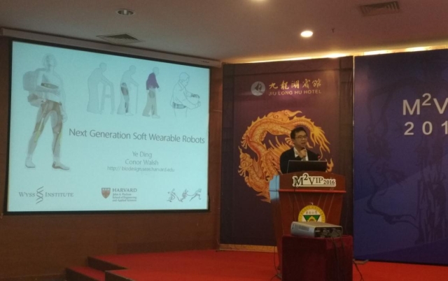 来自美国哈佛大学WyssInstitute – Biodesign Lab的Ye Ding博士对下一代柔性可穿戴机器人进行了展望性主旨演讲,和大家生动介绍了用于髋部、脚踝、手指等人体部位的柔软外穿戴机器人。Ding博士着重介绍了柔软外穿戴机器人的新型驱动形式、智能控制系统以及残疾辅助和康复应用的最新进展,并对面临的挑战提出独特见解。