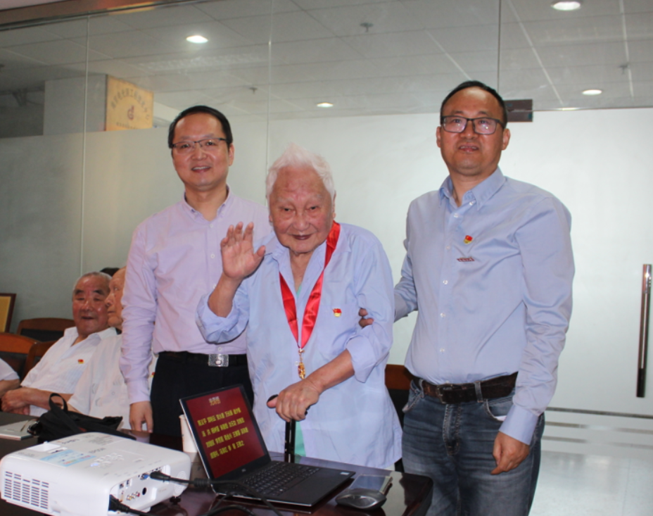 此次,机械工程学院共有19名党员同志荣获“光荣在党50年”纪念章。今年93岁的贺火德老师,已有67年党龄,由亲属推着坐着轮椅前来参加纪念章颁发仪式。87岁的杨钟藩老师,住在江宁区沐春园养老院,和老伴一起坐车2个多小时赶来。部分老党员,因身体原因不能前来,学院党委将会把纪念章送到党员家中。