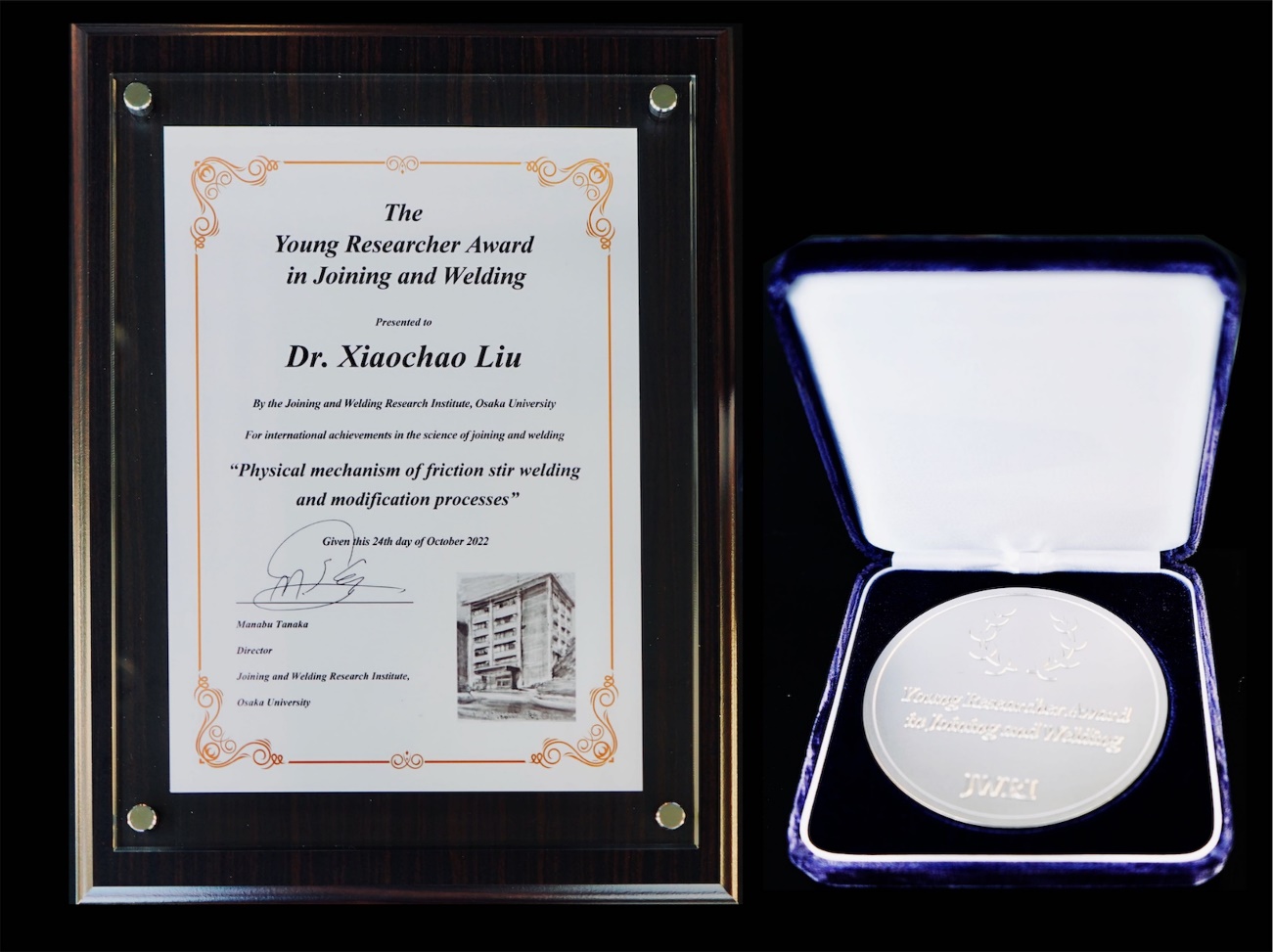 大阪大学接合科学研究所此次评奖采用提名制。首先由世界各地的专家学者对符合条件的候选人进行提名,然后由大阪大学接合科学研究所选聘国际知名专家学者组成的评奖委员会进行评审、评议,并确定最终获奖者。刘小超副教授在众多的候选人中脱颖而出,成为全球首位“焊接与连接青年科学家奖”。评奖委员会认为:“刘小超博士以先进且独特的研究视角对搅拌摩擦焊(friction stir welding, FSW)的物理机制进行研究,在FSW的工艺机理、焊接物理冶金、以及工艺改型等相关领域取得了创新性的研究成果,发表的相关论文有着较高的引用次数,并先后获得STWJ Best Paper Prize和Acta Student Award。刘小超博士已经取得了在国际上广为认可的高水平学术成果,是在焊接与连接科学领域做出了突出贡献的优秀青年人才,特授予此奖。”