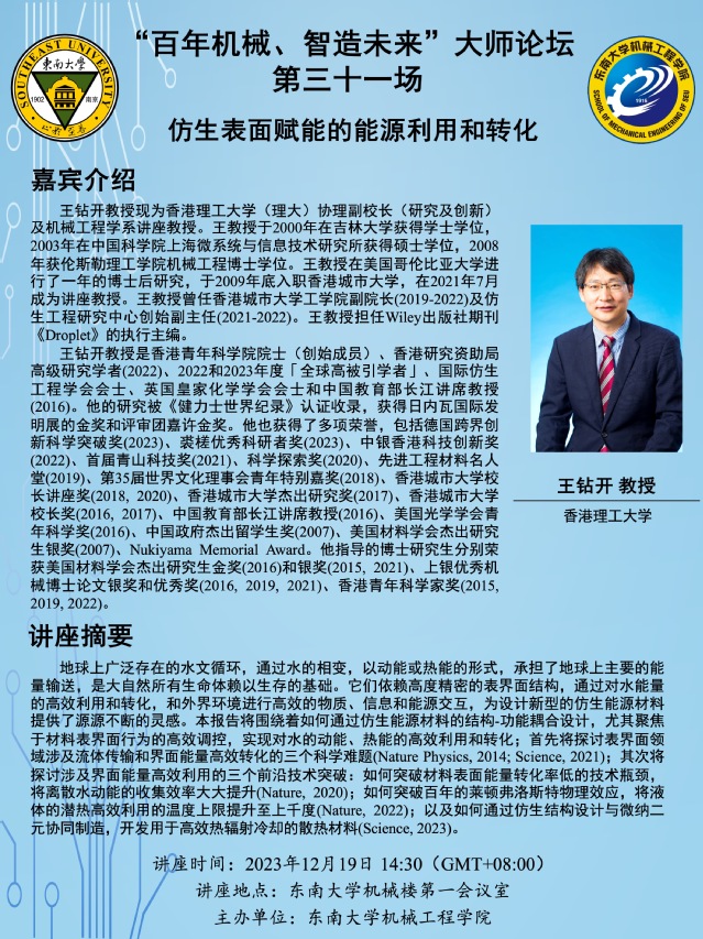 讲座地点:东南大学机械楼第一会议室