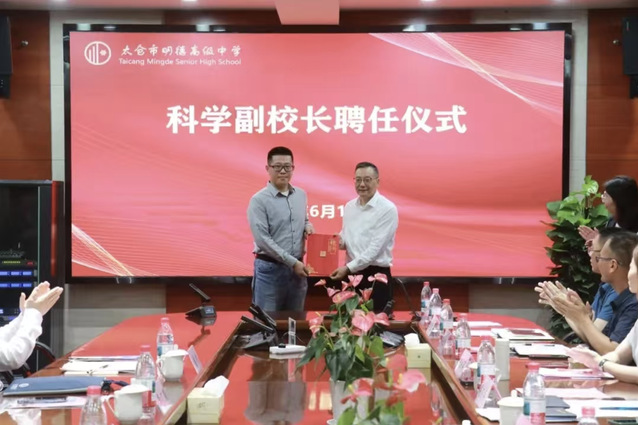 6月13日,太仓市明德高级中学开展科技特色建设专家指导活动。活动现场举行了科学副校长聘任仪式,亚搏平台_亚搏网页版副院长孙东科教授受聘加盟太仓市明德高级中学科技教育团队,太仓市教育局局长李广耀为孙东科教授颁发科学副校长聘书。